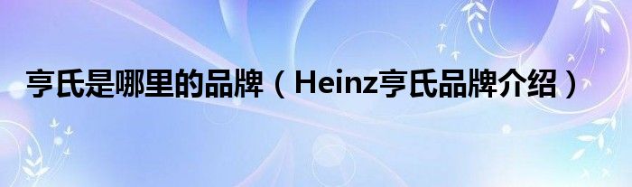 大家好,小源来为大家解答以上问题。亨氏是哪里的品牌,Heinz亨氏品牌介绍很多人还不知道,现在让我们一起来看看吧!