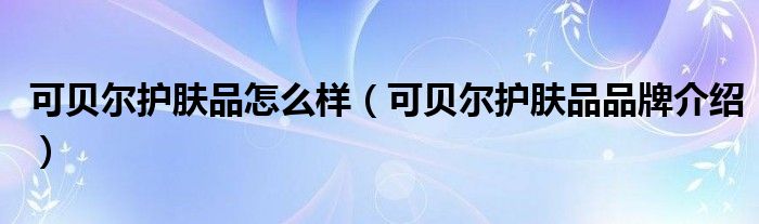 大家好,小源来为大家解答以上问题。可贝尔护肤品怎么样,可贝尔护肤品品牌介绍很多人还不知道,现在让我们一起来看看吧!