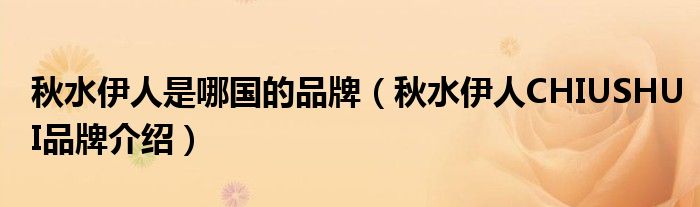 大家好,小源来为大家解答以上问题。秋水伊人是哪国的品牌,秋水伊人CHIUSHUI品牌介绍很多人还不知道,现在让我们一起来看看吧!