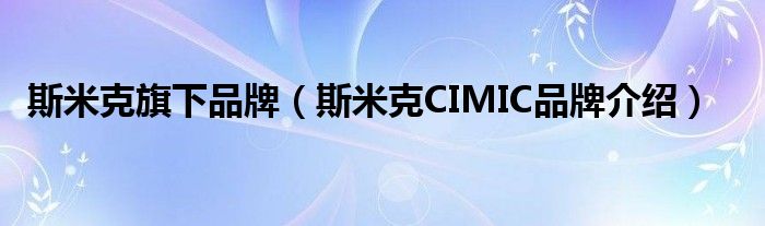大家好,小源来为大家解答以上问题。斯米克旗下品牌,斯米克CIMIC品牌介绍很多人还不知道,现在让我们一起来看看吧!