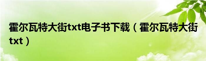 霍尔瓦特大街txt电子书下载(霍尔瓦特大街 txt)
