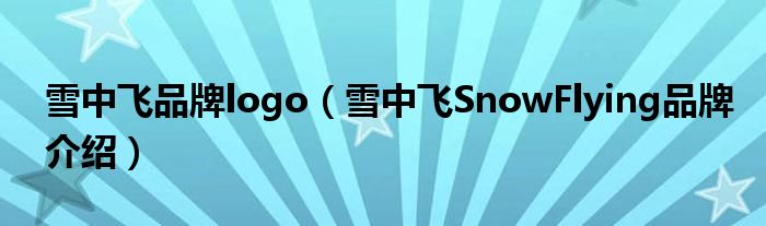 大家好,小源来为大家解答以上问题。雪中飞品牌logo,雪中飞SnowFlying品牌介绍很多人还不知道,现在让我们一起来看看吧!