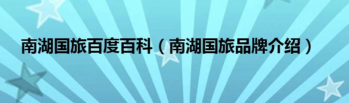 大家好,小源来为大家解答以上问题。南湖国旅百度百科,南湖国旅品牌介绍很多人还不知道,现在让我们一起来看看吧!