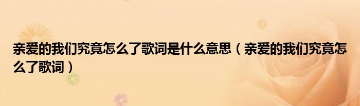 大家好,小飞来为大家解答以上的问题。亲爱的我们究竟怎么了歌词是什么意思,亲爱的我们究竟怎么了歌词这个很多人还不知道,现在让我们一起来看看吧!