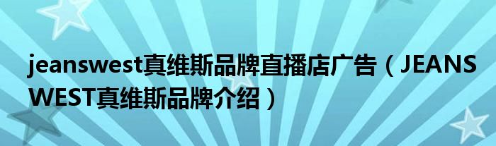 大家好,小源来为大家解答以上问题。jeanswest真维斯品牌直播店广告,JEANSWEST真维斯品牌介绍很多人还不知道,现在让我们一起来看看吧!