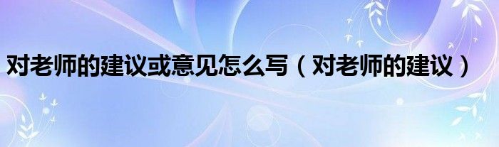 大家好,小飞来为大家解答以上的问题。对老师的建议或意见怎么写,对老师的建议这个很多人还不知道,现在让我们一起来看看吧!