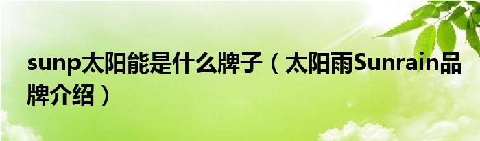 大家好,小源来为大家解答以上问题。sunp太阳能是什么牌子,太阳雨Sunrain品牌介绍很多人还不知道,现在让我们一起来看看吧!