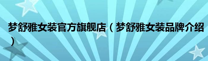 大家好,小源来为大家解答以上问题。梦舒雅女装官方旗舰店,梦舒雅女装品牌介绍很多人还不知道,现在让我们一起来看看吧!