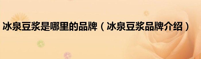 大家好,小源来为大家解答以上问题。冰泉豆浆是哪里的品牌,冰泉豆浆品牌介绍很多人还不知道,现在让我们一起来看看吧!