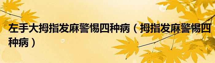大家好,linda来为大家解答以上的问题。左手大拇指发麻警惕四种病,拇指发麻警惕四种病很多人还不知道,现在让我们一起来看看吧!