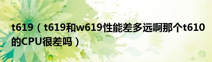1,t619和w619性能差多远啊那个t610的CPU很差吗 :实际情况是他们都差不多,有些功能T没有也有些W没有 而在性能方面我个人做过对比,结论是基本相同。希望对你能有帮助