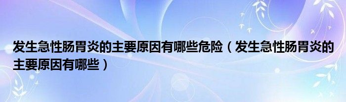 大家好,linda来为大家解答以上的问题。发生急性肠胃炎的主要原因有哪些危险,发生急性肠胃炎的主要原因有哪些很多人还不知道,现在让我们一起来看看吧!