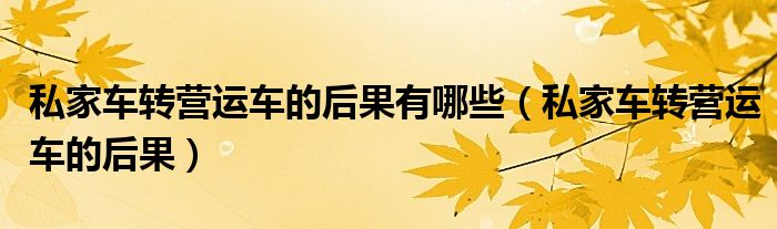 大家好,小晋来为大家解答以下问题,关于私家车转营运车的后果有哪些,私家车转营运车的后果很多人还不知道,今天让我们一起来看看吧!