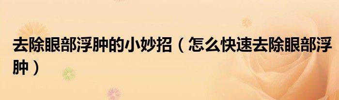 去除眼部浮肿的小妙招(怎么快速去除眼部浮肿)