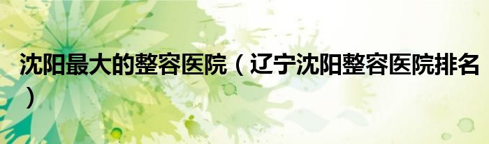 沈阳最大的整容医院(辽宁沈阳整容医院排名)