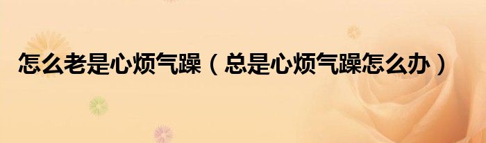 大家好,linda来为大家解答以上的问题。怎么老是心烦气躁,总是心烦气躁怎么办很多人还不知道,现在让我们一起来看看吧!