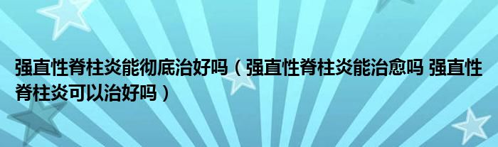大家好,linda来为大家解答以上的问题。强直性脊柱炎能彻底治好吗,强直性脊柱炎能治愈吗 强直性脊柱炎可以治好吗很多人还不知道,现在让我们一起来看看吧!