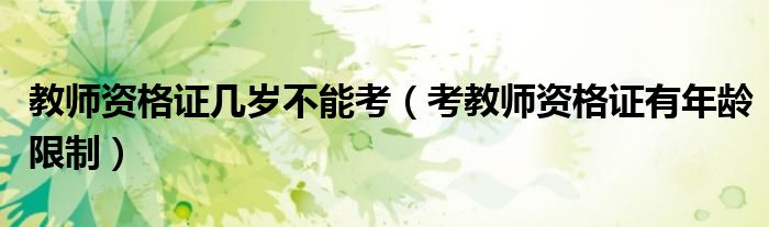 关于教师资格证几岁不能考,考教师资格证有年龄限制这个很多人还不知道,今天菲菲来为大家解答以上的问题,现在让我们一起来看看吧!
