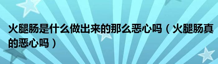 大家好,小晋来为大家解答以下问题,关于火腿肠是什么做出来的那么恶心吗,火腿肠真的恶心吗很多人还不知道,今天让我们一起来看看吧!