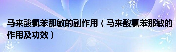 大家好,linda来为大家解答以上的问题。马来酸氯苯那敏的副作用,马来酸氯苯那敏的作用及功效很多人还不知道,现在让我们一起来看看吧!