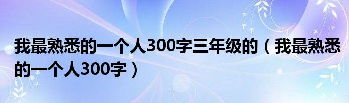 关于我最熟悉的一个人300字三年级的,我最熟悉的一个人300字这个很多人还不知道,今天菲菲来为大家解答以上的问题,现在让我们一起来看看吧!