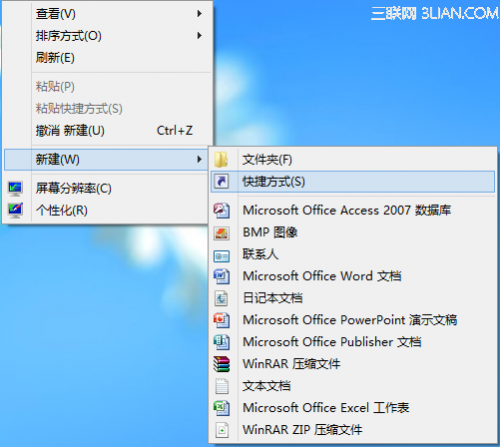 第一步、右键桌面新建一个快捷方式。