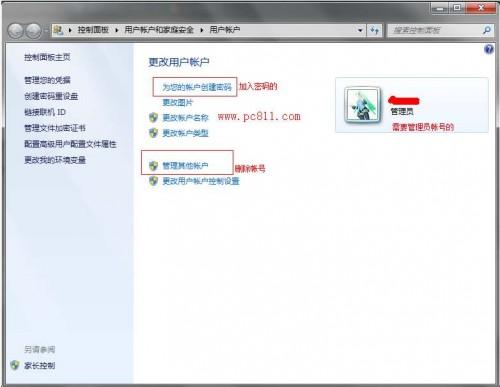 只要是Windows系统都可以直接在计算机管理中直接去计算机用户进行删除操作,当然也可以在控制面板>用户帐户和家庭安全>用户帐户。这里进行系统帐户的一些删除操作。