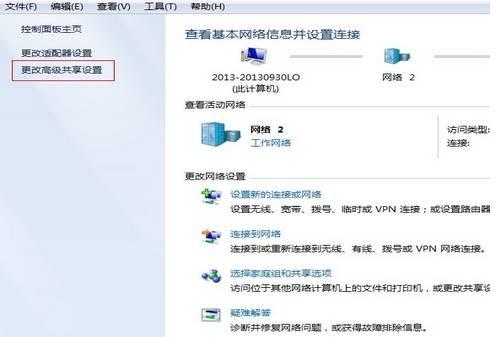 首先需要确保电脑份工作组的名字没有发生改变,都是使用的默认工作组,在win7点电脑上,打开控制面板窗口,在窗口中找到并双击网络和共享中心,在随后出现的窗口左边中找到并点击更改高级共享设置。