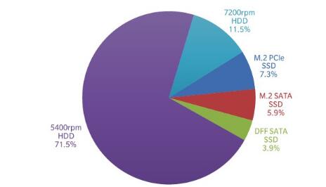 消息人士分析了这种情况,并在笔记本电脑中引入了固态驱动器。就使用的存储设备而言,笔记本电脑市场在历史上发生了重大变化。多年来,硬盘驱动器一直是标准的存储设备。假设在6年前的2014年,SSD才开始渗透到笔记本电脑中,而83%的笔记本电脑都装有硬盘。在短短一年内,便运送了1.79亿台笔记本电脑。