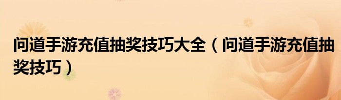 大家好,小晋来为大家解答以下问题,关于问道手游充值抽奖技巧大全,问道手游充值抽奖技巧很多人还不知道,今天让我们一起来看看吧!