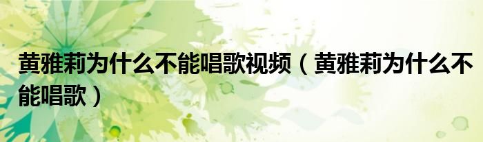 黄雅莉为什么不能唱歌视频(黄雅莉为什么不能唱歌)
