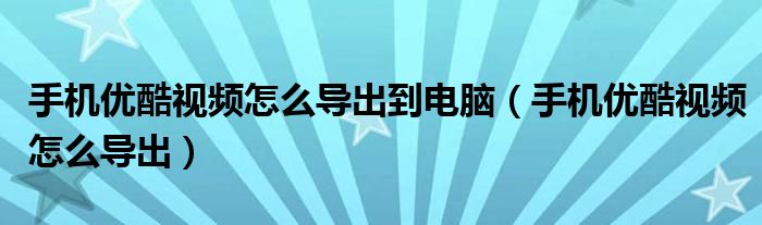 大家好,小晋来为大家解答以下问题,关于手机优酷视频怎么导出到电脑,手机优酷视频怎么导出很多人还不知道,今天让我们一起来看看吧!