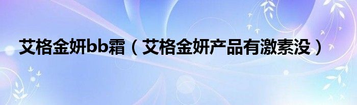 大家好,小晋来为大家解答以下问题,关于艾格金妍bb霜,艾格金妍产品有激素没很多人还不知道,今天让我们一起来看看吧!