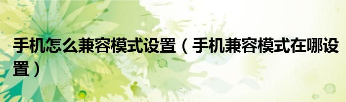 大家好,小晋来为大家解答以下问题,关于手机怎么兼容模式设置,手机兼容模式在哪设置很多人还不知道,今天让我们一起来看看吧!