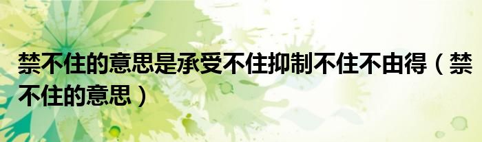 大家好,小晋来为大家解答以下问题,关于禁不住的意思是承受不住抑制不住不由得,禁不住的意思很多人还不知道,今天让我们一起来看看吧!