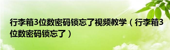 大家好,小晋来为大家解答以下问题,关于行李箱3位数密码锁忘了视频教学,行李箱3位数密码锁忘了很多人还不知道,今天让我们一起来看看吧!