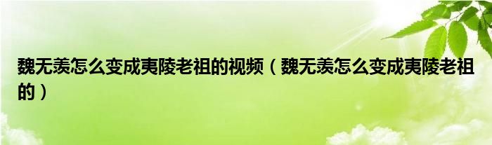 大家好,小晋来为大家解答以下问题,关于魏无羡怎么变成夷陵老祖的视频,魏无羡怎么变成夷陵老祖的很多人还不知道,今天让我们一起来看看吧!