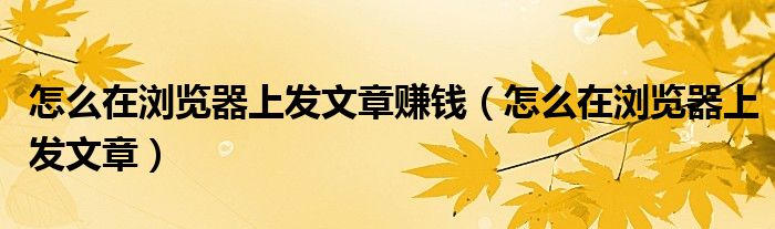 大家好,小晋来为大家解答以下问题,关于怎么在浏览器上发文章赚钱,怎么在浏览器上发文章很多人还不知道,今天让我们一起来看看吧!