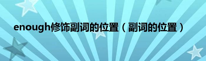 大家好,小晋来为大家解答以下问题,关于enough修饰副词的位置,副词的位置很多人还不知道,今天让我们一起来看看吧!