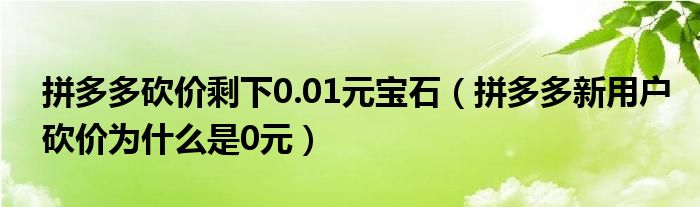 大家好,跳跳为你解答以上问题。拼多多砍价剩下0.01元宝石,拼多多新用户砍价为什么是0元这个问题很多人还不知道,现在让我们一起来看看吧!