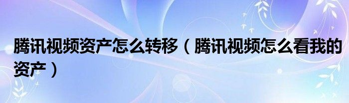 腾讯视频资产怎么转移(腾讯视频怎么看我的资产)