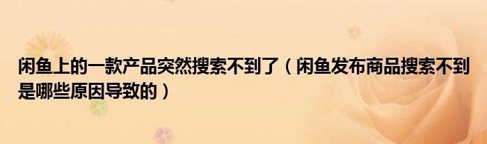 大家好,跳跳为你解答以上问题。闲鱼上的一款产品突然搜索不到了,闲鱼发布商品搜索不到是哪些原因导致的这个问题很多人还不知道,现在让我们一起来看看吧!