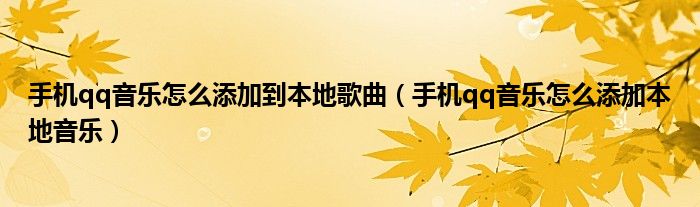 大家好,跳跳为你解答以上问题。手机qq音乐怎么添加到本地歌曲,手机qq音乐怎么添加本地音乐这个问题很多人还不知道,现在让我们一起来看看吧!