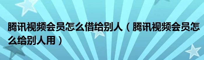 大家好,跳跳为你解答以上问题。腾讯视频会员怎么借给别人,腾讯视频会员怎么给别人用这个问题很多人还不知道,现在让我们一起来看看吧!