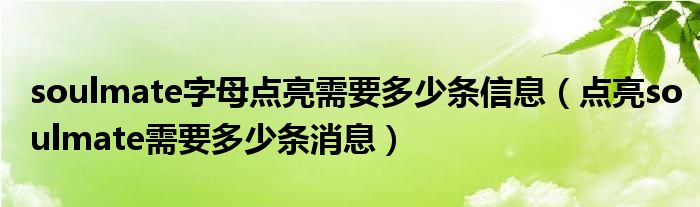 大家好,跳跳为你解答以上问题。soulmate字母点亮需要多少条信息,点亮soulmate需要多少条消息这个问题很多人还不知道,现在让我们一起来看看吧!