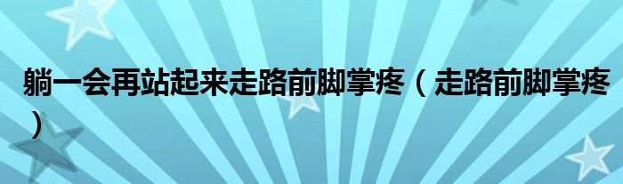 大家好,linda来为大家解答以上的问题。躺一会再站起来走路前脚掌疼,走路前脚掌疼很多人还不知道,现在让我们一起来看看吧!