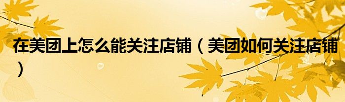 大家好,跳跳为你解答以上问题。在美团上怎么能关注店铺,美团如何关注店铺这个问题很多人还不知道,现在让我们一起来看看吧!
