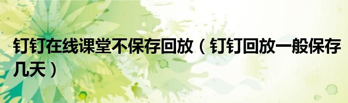 大家好,跳跳为你解答以上问题。钉钉在线课堂不保存回放,钉钉回放一般保存几天这个问题很多人还不知道,现在让我们一起来看看吧!