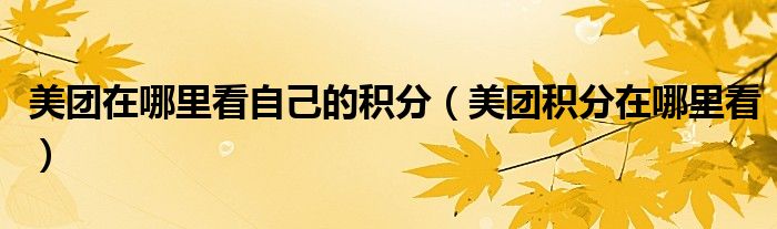 大家好,跳跳为你解答以上问题。美团在哪里看自己的积分,美团积分在哪里看这个问题很多人还不知道,现在让我们一起来看看吧!