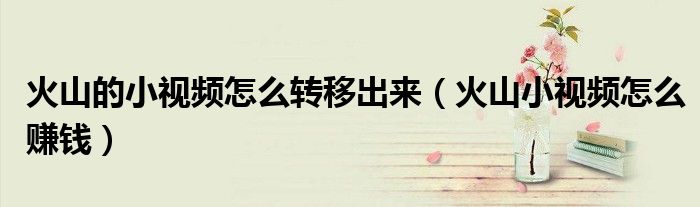 大家好,跳跳为你解答以上问题。火山的小视频怎么转移出来,火山小视频怎么赚钱这个问题很多人还不知道,现在让我们一起来看看吧!